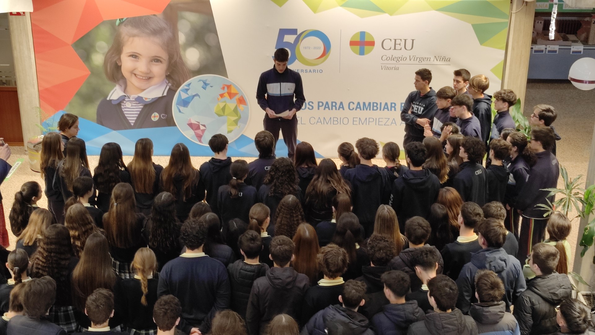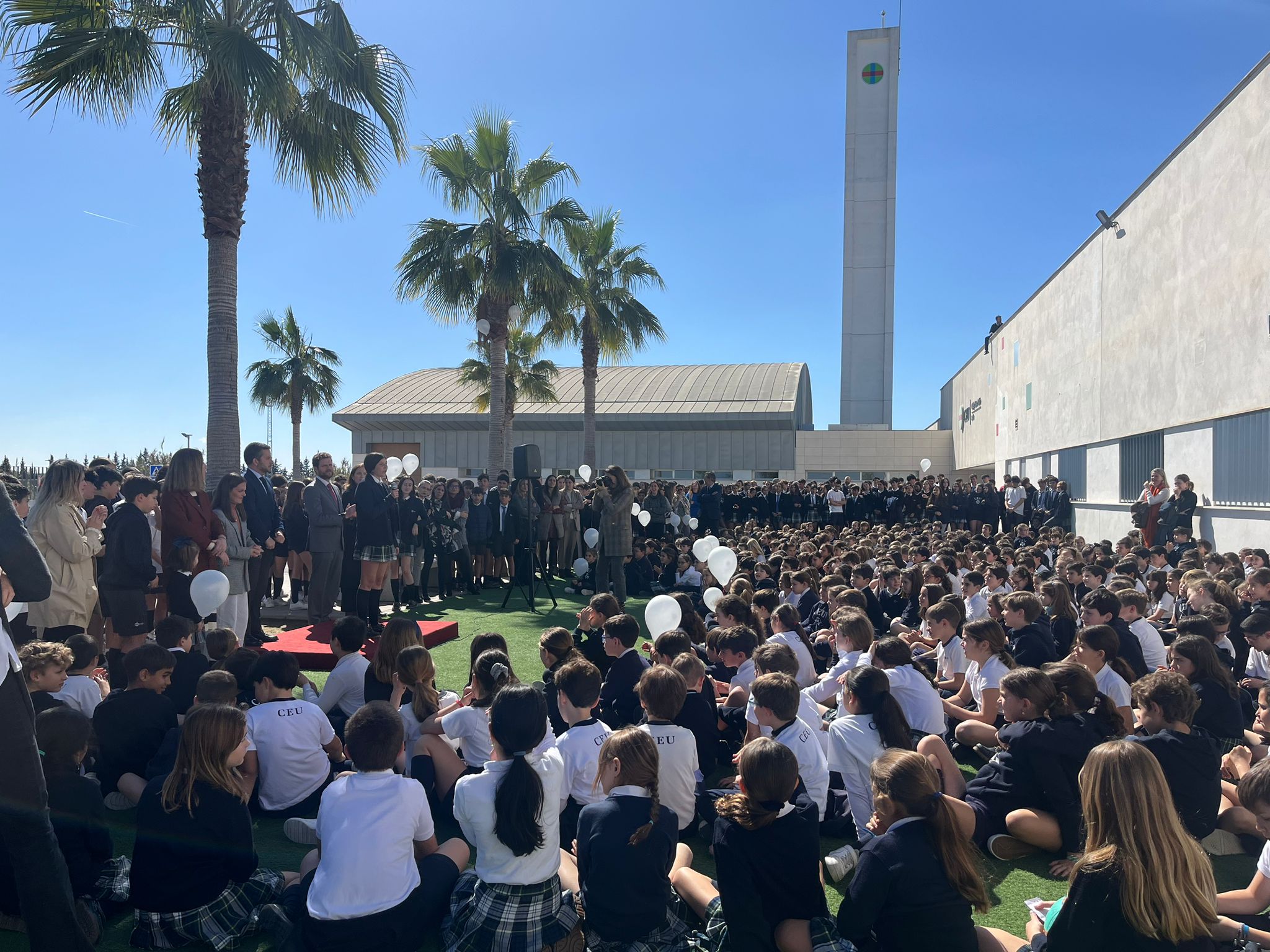 Pie de foto: Alumnos del Colegio CEU San Pablo Montepríncipe durante el homenaje.