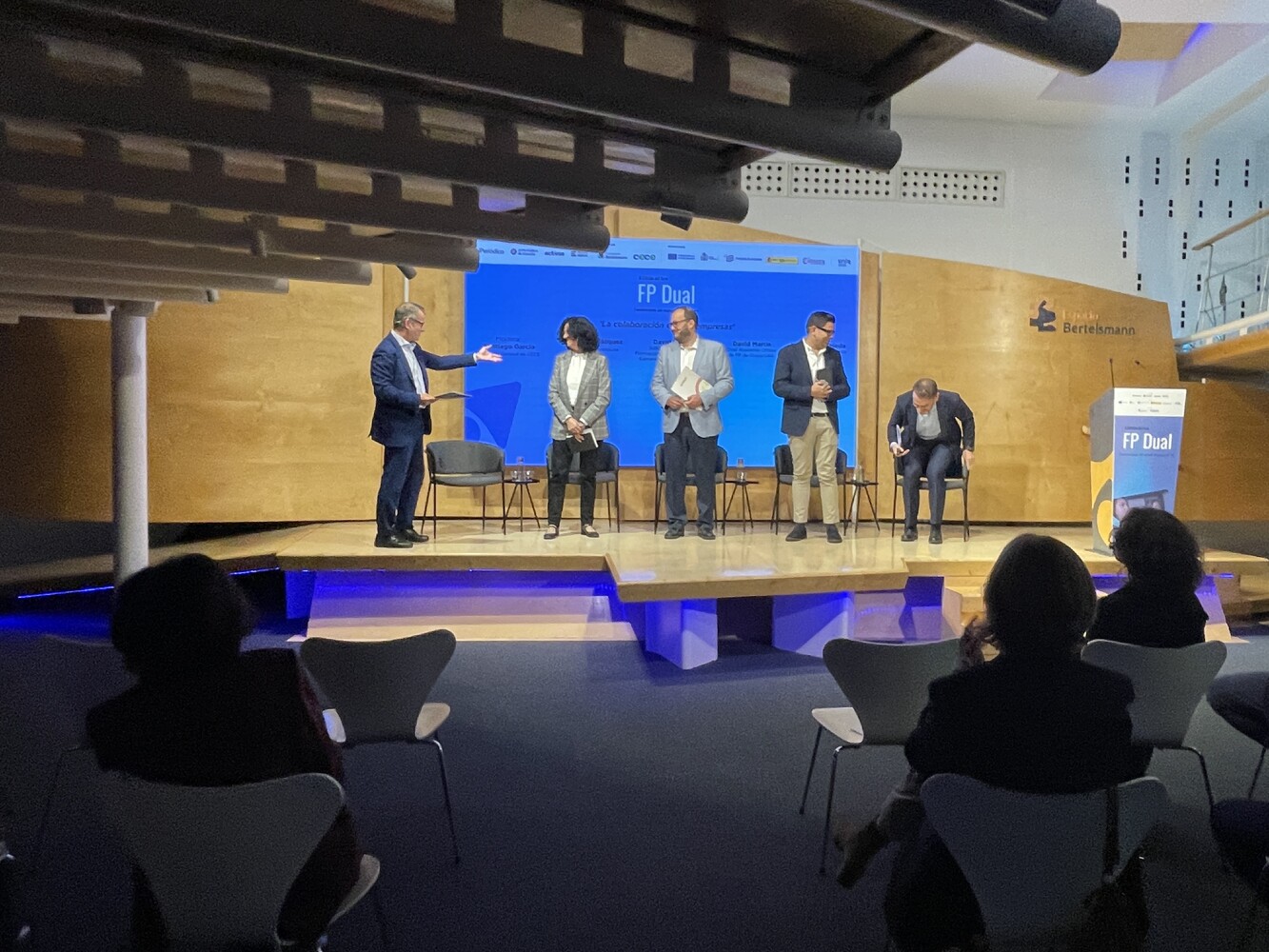 En la segunda mesa titulada “El ecosistema FP dual en un marco de transformaciones sociales y tecnológicas” intervinieron la directora general de la Fundación Bertelsmann Carmen Sebrango Sadia, junto a representantes del CEU Educational Group, Otis Elevator C.O y la Comisión Europea en España, con la moderación de María Huertas de Gándara (Fundación Exit). Todos ellos se centraron en identificar los principales retos a los que se enfrenta el modelo en el primer año de implantación de la Ley de FP. También se habló de la multitud de oportunidades que se presentan en este escenario.